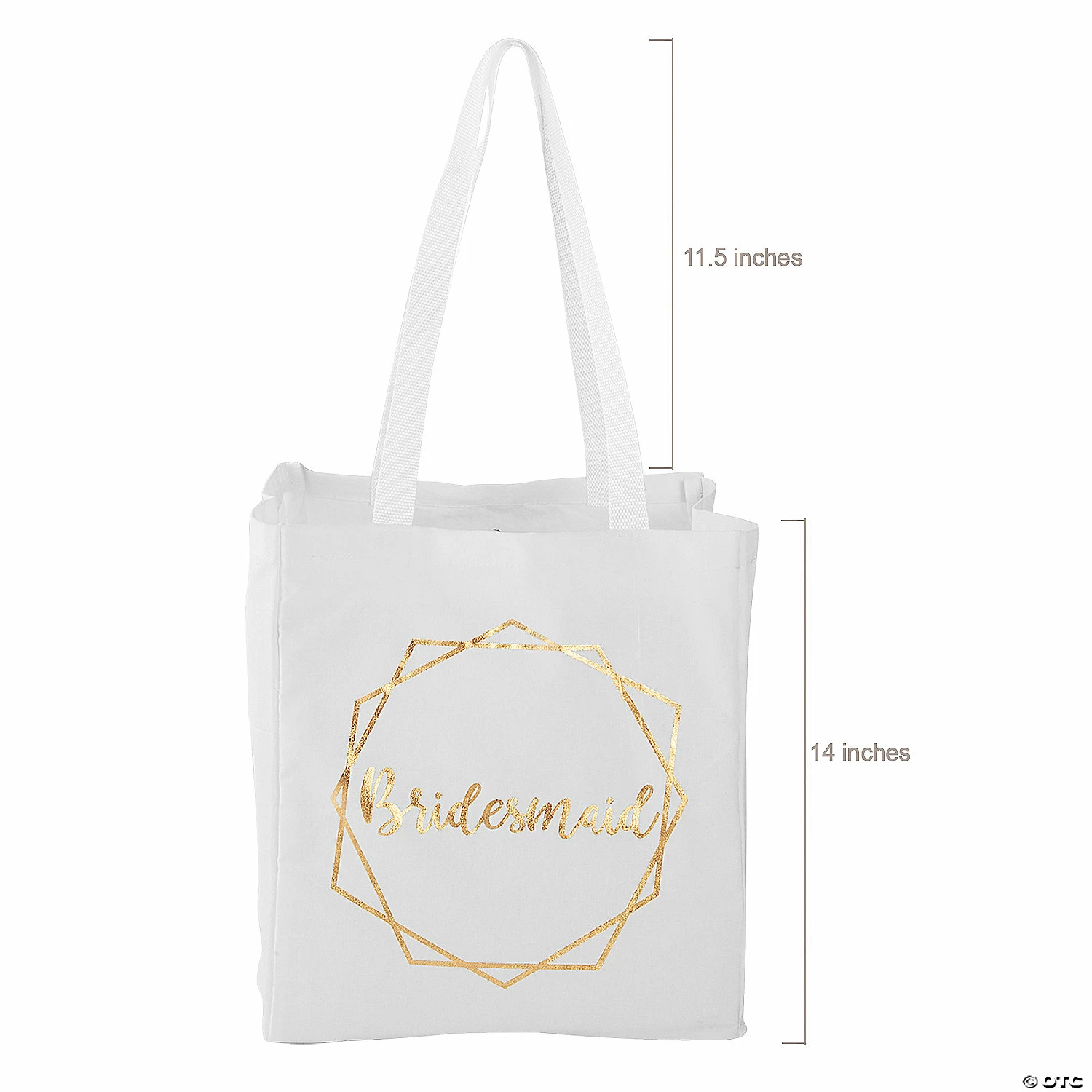 β’ Multi-purpose: This tote bag can carry a range of everyday essentials, including books, toys, groceries, snacks, sunglasses, and more! Bring it along for outings to the beach, the park, the farmerβs market, or even the store. Youβll be glad you did! β’ Durable Quality: Made of cloth, this sturdy tote bag wonβt let you or your accessories down. As an added bonus, you can easily store the reusable bag until you need it again. β’ Eco-Friendly: Ditch the plastic bags and go green with this eco-friendly tote bag! Mother Earth is sure to appreciate the kind gesture!Product Description: Show your bridesmaid just how much she means to you with this beautiful tote! Sheβll be totes thrilled when you present it as a thank-you gift bag and fill it with such fabulous goodies as make-up, hair accessories, books, jewelry, candies and other items personally picked out to pamper your best pal. Bridesmaids can use these handy bags to keep their wallet, extra shoes, hair supplies, makeup and other essentials nearby on the wedding day…and for many days after the nuptials are said and done! Β© OTCSize: 12″ x 14″ with 11 1/2″ handles.Quantity: 1Material: Canvas.