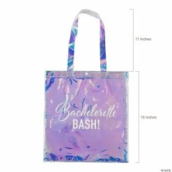 β’ Durable Quality: Made of cloth, this sturdy tote bag wonβt let you or your accessories down. Plus, you can easily store the reusable bag away until you need it again. β’ Eco-Friendly: Ditch the plastic bags and go green with this eco-friendly tote bag! Mother Earth is sure to appreciate the gesture, so go ahead and gift this tote bag to your friends and family while youβre at it! β’ Travel-Friendly: No matter where your day takes you, this tote bag is sure to be a handy companion! Designed with easy-to-use straps and a spacious interior compartment, this tote bag is ready for on-the-go fun! Product Description:Gold, glittery and great for your big day! Perfect for bridal party gifts, this chic carryall can be personalized with a name that comes in a stylish sparkling font. Gift it to the bride, or she can even give one to each special lady in her party. Best of all, this roomy tote bag is spacious enough to carry all she needs the day of the wedding. Everything from makeup and an extra pair of shoes to a robe and hair products will fit safely inside! Personalize with 1 line of text. Β© OTCSize: 18″ x 20″ with 11″ handles.Quantity: 1Material: Canvas.